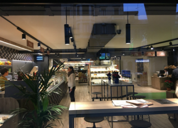 En concreto, en la primera planta se encuentra la zona de alimentación, donde se ofrecen ensaladas, pizzas, frutas, helados, cervezas, cafés, croissants recién hechos y sushi, entre otros productos. Por su parte, la segunda planta acoge un ‘launge bar’ y un área de coworking. Abre todos los días, de 07:00 a 22:00 horas.