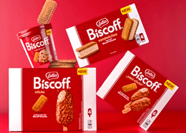 La gama incluye el bombón Lotus Biscoff, disponible en formato multipack y unidad individual, así como su versión mini, el sándwich de helado en formato multipack y la tarrina de 425 ml. Estos productos combinan helado con trozos de galleta y recubrimientos elaborados a partir de Biscoff.