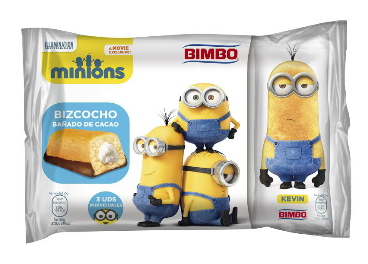 Existen tres diseños distintos que mimetizan las siluetas de Kevin, Bob y Stuart, protagonistas de la película. Bimbo Minions llega con un formato de tres unidades envasadas individualmente. Además, la marca también lanza un formato individual de Bimbo Minions para el canal detalle.