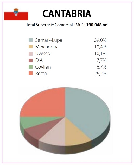 En concreto, Semark cuenta con 39% de la superficie comercial del supermercado en Cantabria, gracias a los 74.066 metros cuadrados (m2) que despliegan sus 90 puntos de venta en la región, tal y como revela un informe elaborado por Retail Data y publicado en exclusiva por infoRETAIL, con fecha de 30 abril de 2025.